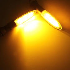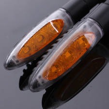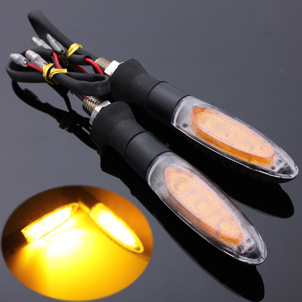 Specification: Material: ABS Plastic Case Colors: Black & Clear Light Color: Amber Voltage:12V LED'S per bulb: 3LEDs Size:As the picture show Wire length: 21cm Package Included: 1pair x Motorcycle Turn Signals