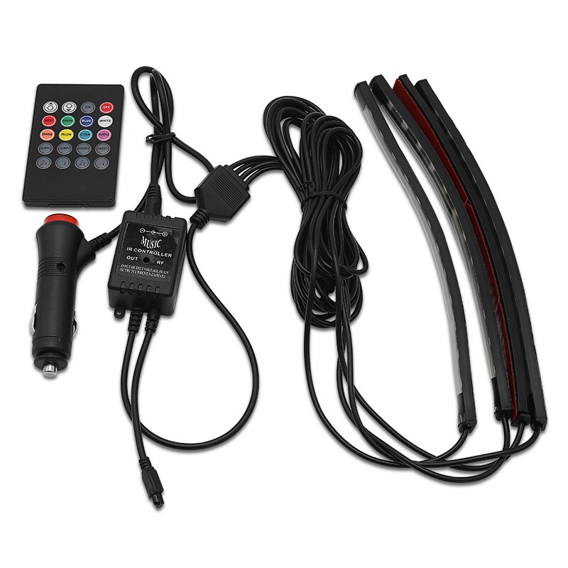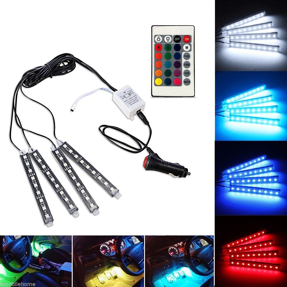[2507] 4pcs Car Interior Atmosphere Neon Lights Strip 9LED Wireless IR Remote Controllable